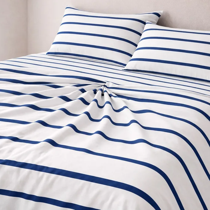 סט ג'רסי פרימיום 100% כותנה סרוקה I פסים - לבן כחול