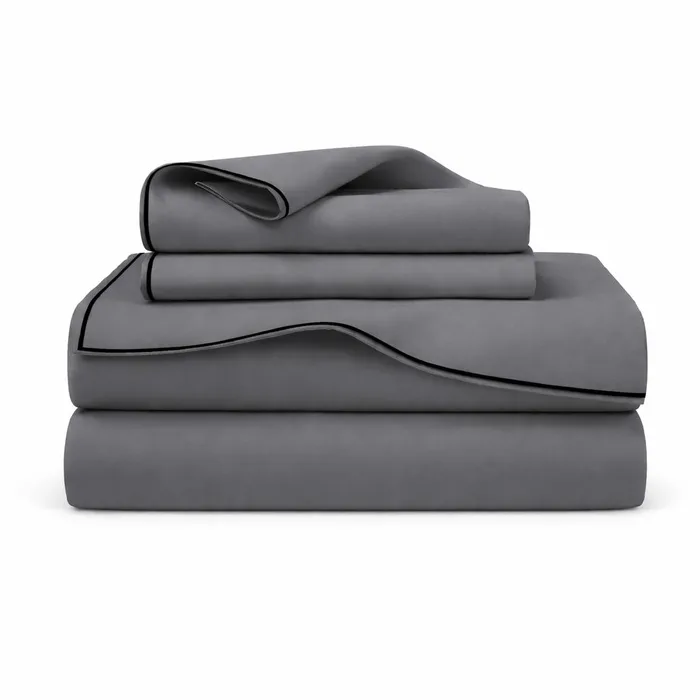 סט סאטן יוקרתי I פייפינג אפור כהה