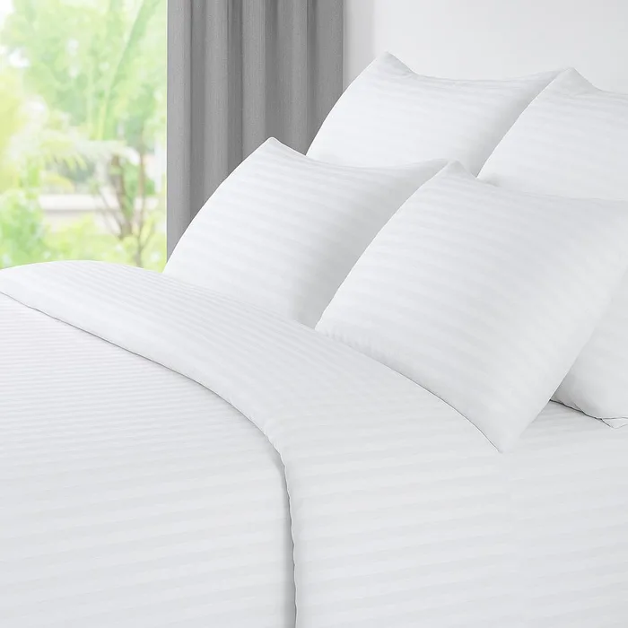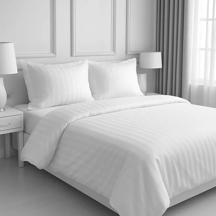סט מצעים מלא -סאטן כותנה דגם בית מלון פסים לבן