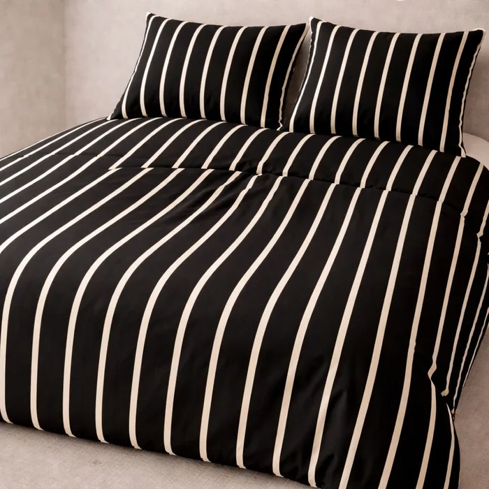 סט ג'רסי פרימיום 100% כותנה סרוקה I פסים - שחור שמנת